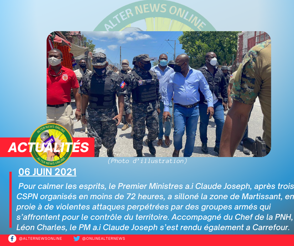 Haiti/Martissant: Le PM a.i Claude Joseph annonce le retour au calme Publié parAlterNewsOnline07/06/2021Publié dansNon classé Partager :Partager Cliquer pour partager sur X(ouvre dans une nouvelle fenêtre) X Cliquez pour partager sur Facebook(ouvre dans une nouvelle fenêtre) Facebook Cliquez pour partager sur WhatsApp(ouvre dans une nouvelle fenêtre) WhatsApp J’aime chargement… Similaire Publié par AlterNewsOnline Toutes les dernières informations en créole et en français. Flash, Alerte, Breaking News Infos/Actu Voir plus d’articles