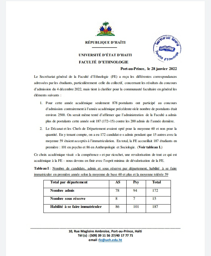 D’après le Secrétaire général, Theuriet Direny : il est de notre responsabilité de rendre la Faculté Ethnologie fonctionnelle, il s’agit de l’avenir de nos jeunes haïtiens. Nous devons faire tout ce qui est de notre devoir pour que les jeunes puissent étudier dans la paix et la sérénité et surtout d’économiser le temps dans un contexte aussi fragile et précaire. Nous sommes toujours à l’écoute.