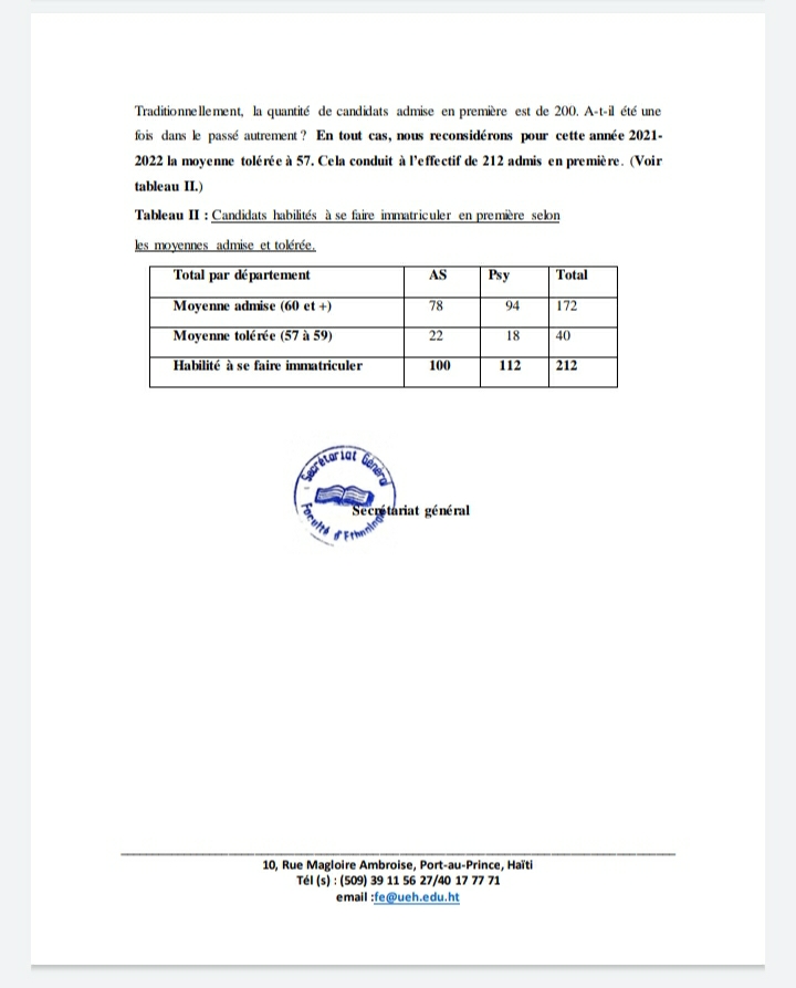 Ce qui conduit à une effectif de 212 admis en première année. Une telle décision a été motivée dans le but de désarmorcer le désordre qui sévit dans la Faculté depuis tantôt trois semaines.