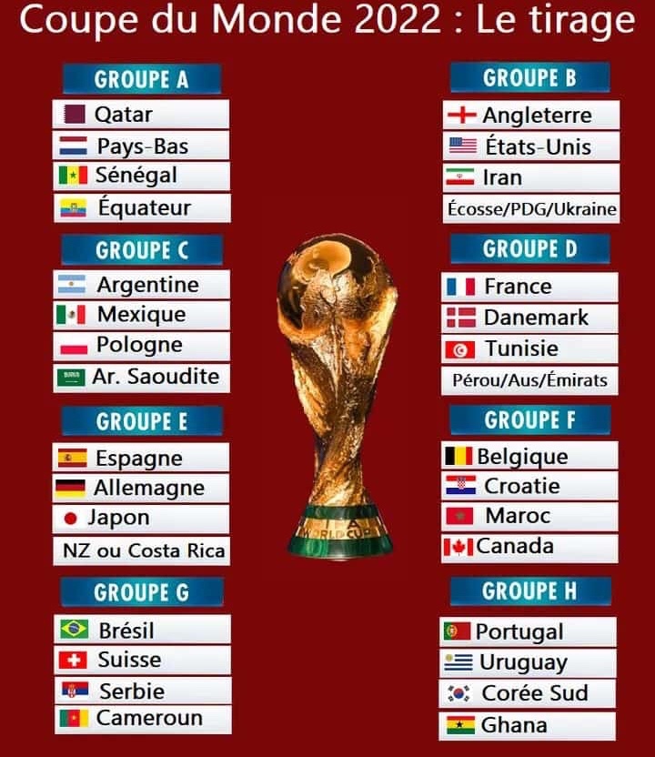 Désormais, toutes les équipes déjà qualifiées pour la coupe du Monde Qatar 2022 connaissent leurs adversaires en phase de poule, suite au tirage au sort effectué ce vendredi 1er avril par la Fédération Internationale de Football Amateur (FIFA).