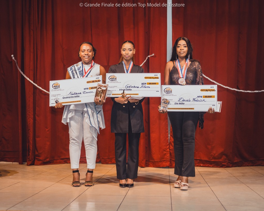 En présence du PDG de Top Model de Tisstore, M. Tisse, et des invités d’honneur, M. CharlesJean Gardy et Madame JN Baptiste Barbara, la soirée a culminé avec la délibération du jury. Cinq finalistes ont été choisis, et les trois premiers ont été honorés pour leurs efforts exceptionnels. Kattiana Durose la grande gagnante, a reçu une récompense de 40 000 mille gourdes, Jémima Pierre , la deuxième, a obtenu 200 000 gourdes, et Darvla Frédéric la troisième, a été gratifiée de 10 000 mille gourdes pour leurs contributions incontestables.